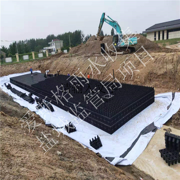 雨水蓄水模塊主要作用是雨水收集、儲存、調蓄。降雨時把雨水徑流的高峰流量暫存其內 ,待最大流量下降后再從雨水收集池中將雨水慢慢地排出。這樣既能規避雨水洪峰,實現雨水循環利用,又能避免初期雨水對承受水體的污染,還能對排水區域間的排水調度起到積極作用。