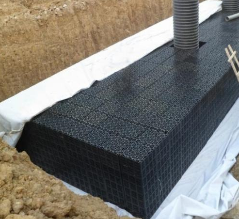 對于預處理完畢的雨水,則需考慮如何將PP模塊收集起來的雨水在短時間類不會變質.我們的PP模塊采用PP材料制作而成的具有特殊結構的材料,可以為蓄水、排水空間支撐起一個有承壓的結構,同時在蓄水模塊的上部還可以很方便地設置生態淺溝層對雨水進行初步截污處理.