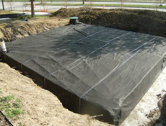 以聚丙烯塑料模塊相組合,形成一個地下水池,在水池周圍根據工程的需要可以包裹防滲不透水和可以入滲透水的兩種土工布,做成貯水型和滲透型的兩種不同類型.