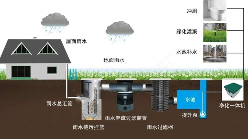 3、雨水收集池:用于收集儲存雨水,回收在利用。