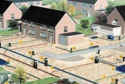 3、是生態小區雨水利用系統。小區沿著排水道建有滲透淺溝,表面植有草皮,供雨水徑流流過時下滲。超過滲透能力的雨水則進入雨水池或人工濕地,作為水景或繼續下滲。